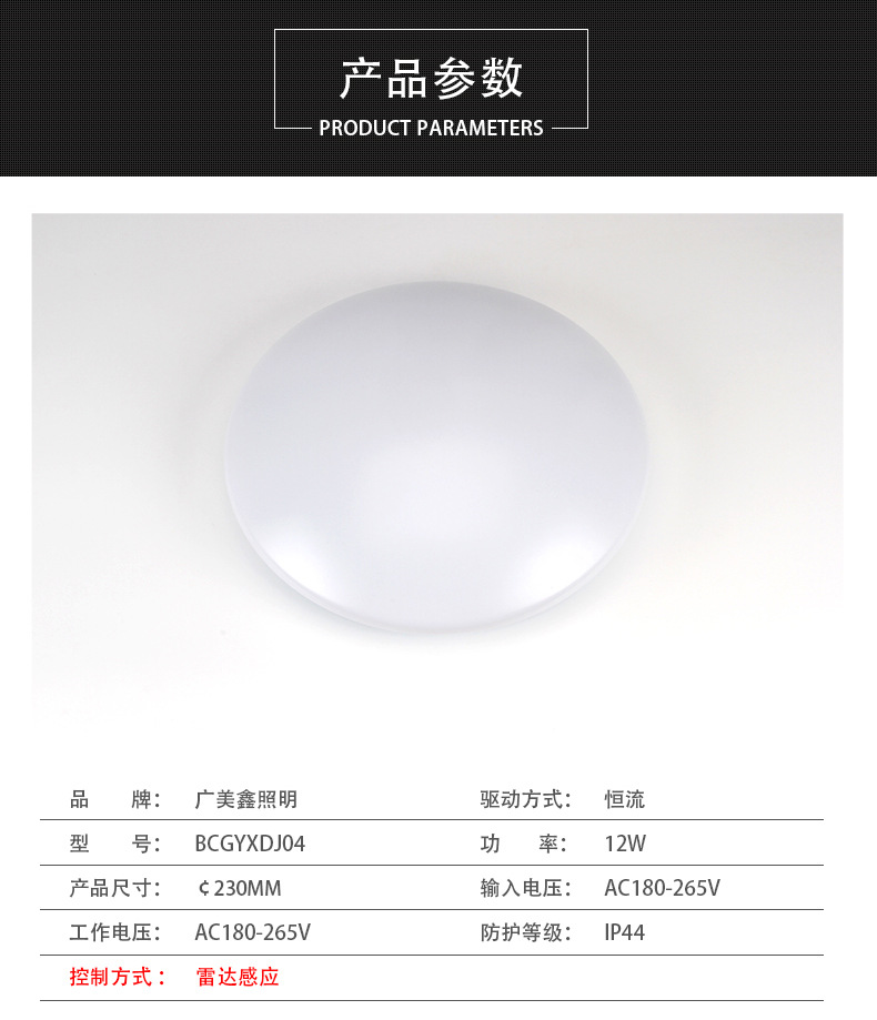 Light color | Radar induction white light | Power source | 12W(W) | Whether cross-border supply | No |